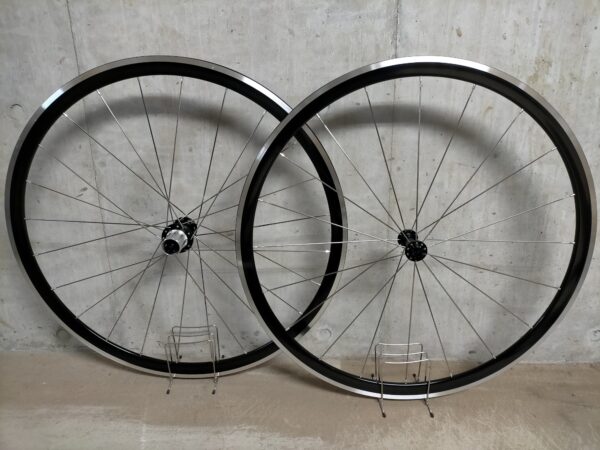リムブレーキ対応、前後1410gの軽量エアロホイール。リムハイト30mm、エアロスポーク仕様。